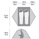 Innenbereich: Die Innenfläche ist mit 2,82 m² besonders groß. Dank der rechteckigen Grundfläche bietet das Zelt problemlos Platz für moderne breite Isomatten. Die Zeltplane ist eine Mischung aus Netz- und Feststoff für gute Lüftung und Privatsphäre. Die kurvenfreien Zelteingänge haben Reißverschlüsse, die sich mit einer Hand bedienen lassen. Zudem enden die Reißverschlüsse nach dem Zuziehen immer an derselben Stelle, damit der Schieber auch im Dunkeln gefunden werden kann. Stautaschen für Geräte aller Art mit Kabelführungen an den Ecken für Kopfhörer und Ladekabel. Die Ausrüstungsablagen über Kopfhöhe sind ideal für Stirnlampen, Sonnenbrillen und mehr.